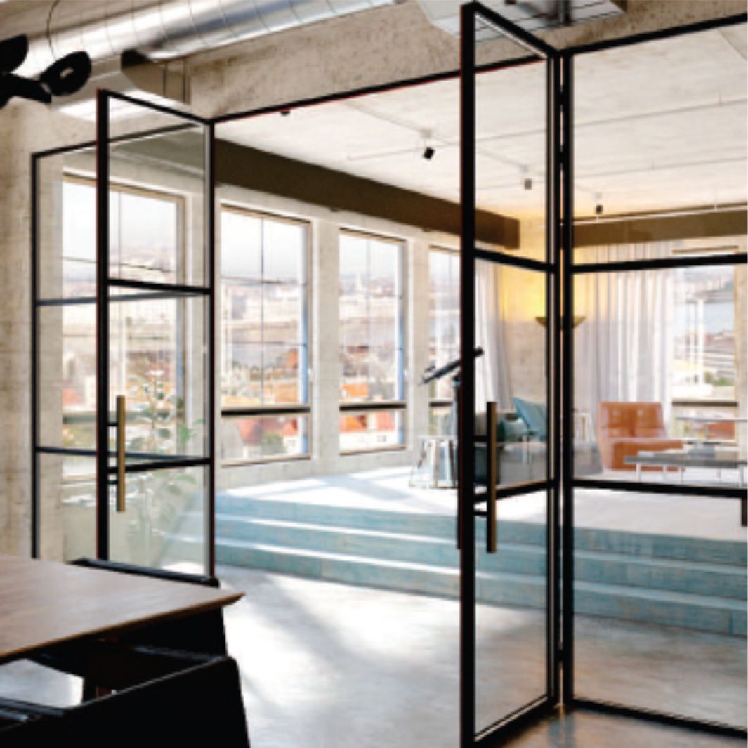 A rendszer lehetővé teszi az egyszárnyú nyíló, dupla szárnyú nyíló vagy a lengőajtók (pivot) összeszerelését. Ami a tervezést illeti, az üvegezett válaszfalrendszerünk tökéletes vá-lasztás a minimalista és ipari formatervezésű é-pületekhez, a klasszikus otthonokhoz, a tetőtéri lakásokhoz, de akár irodákhoz és kültéri tera-szokhoz is.